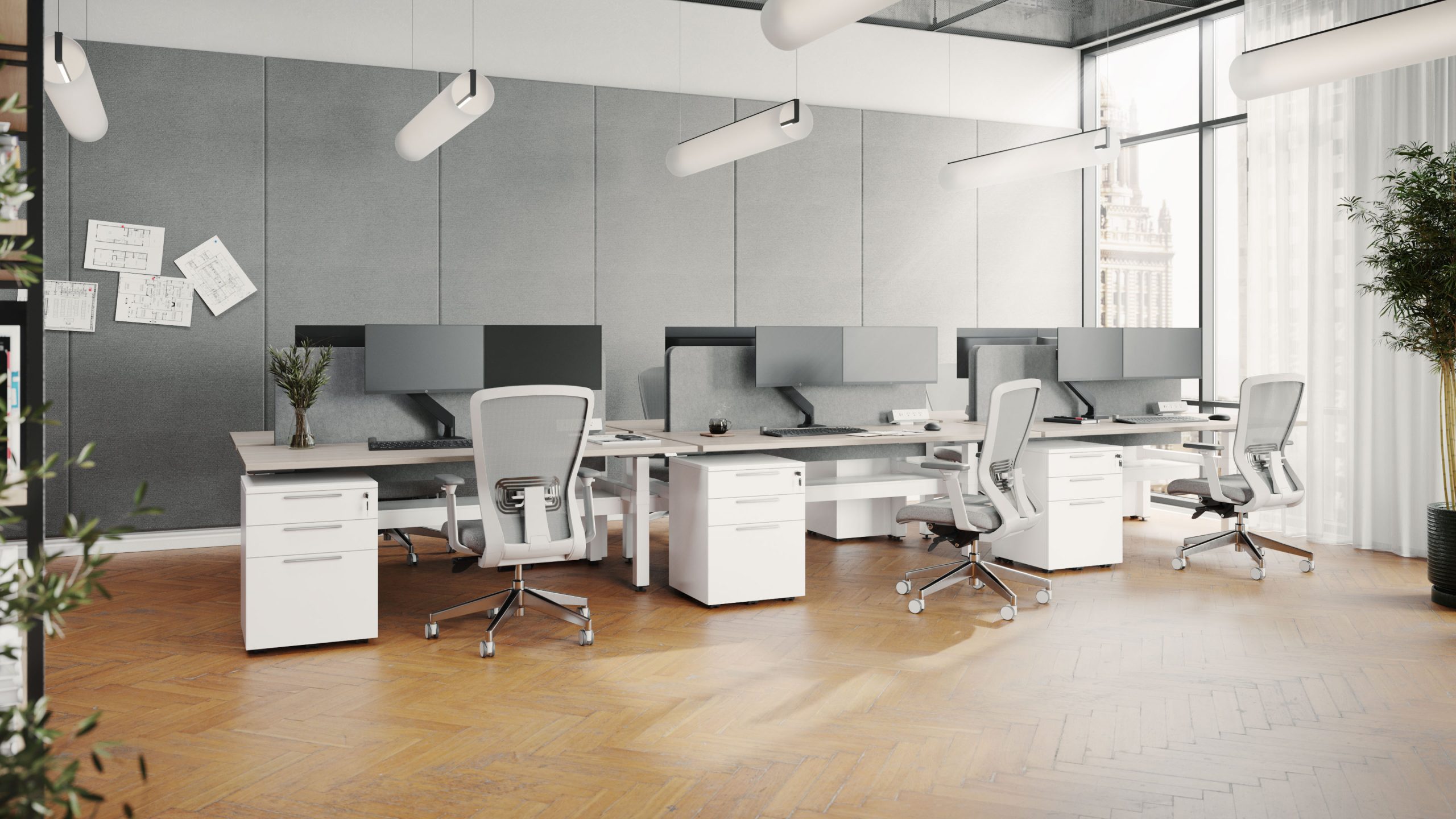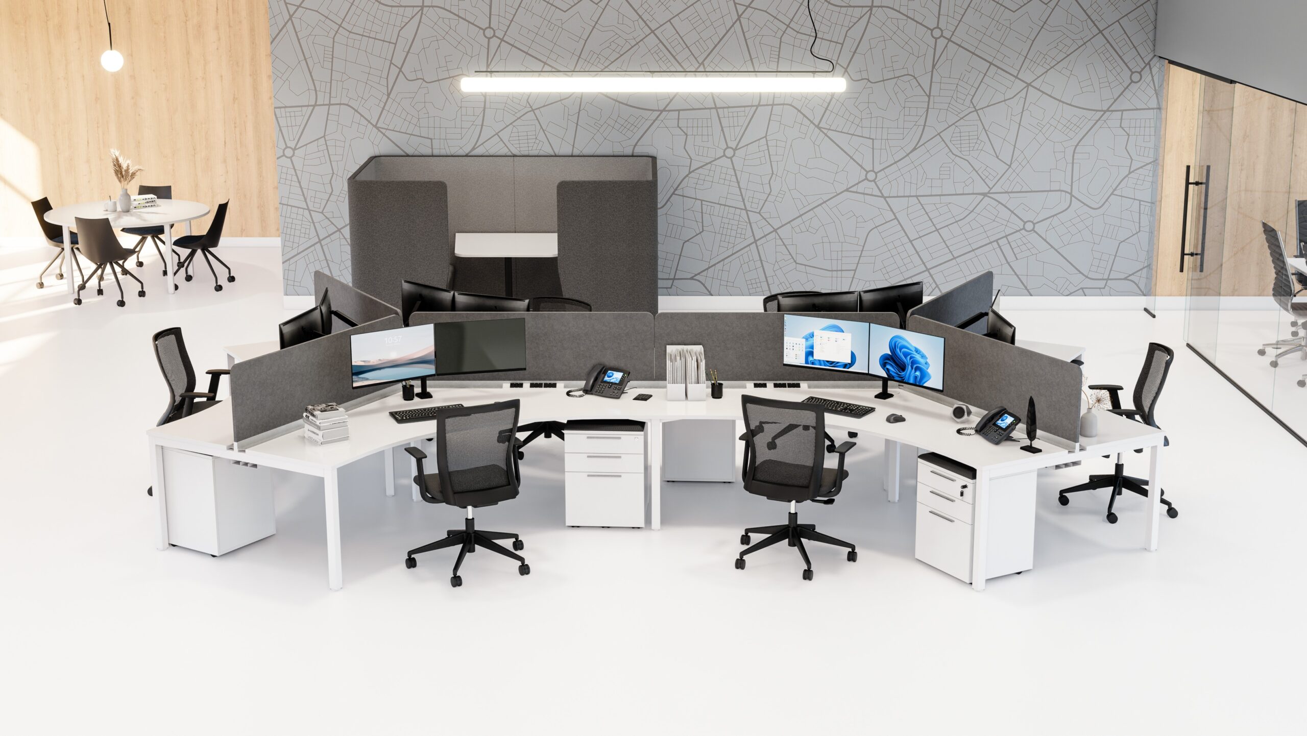 Dans notre sélection de bureaux à aire ouverte, nous accordons une importance particulière à l’esthétique et à la fonctionnalité.