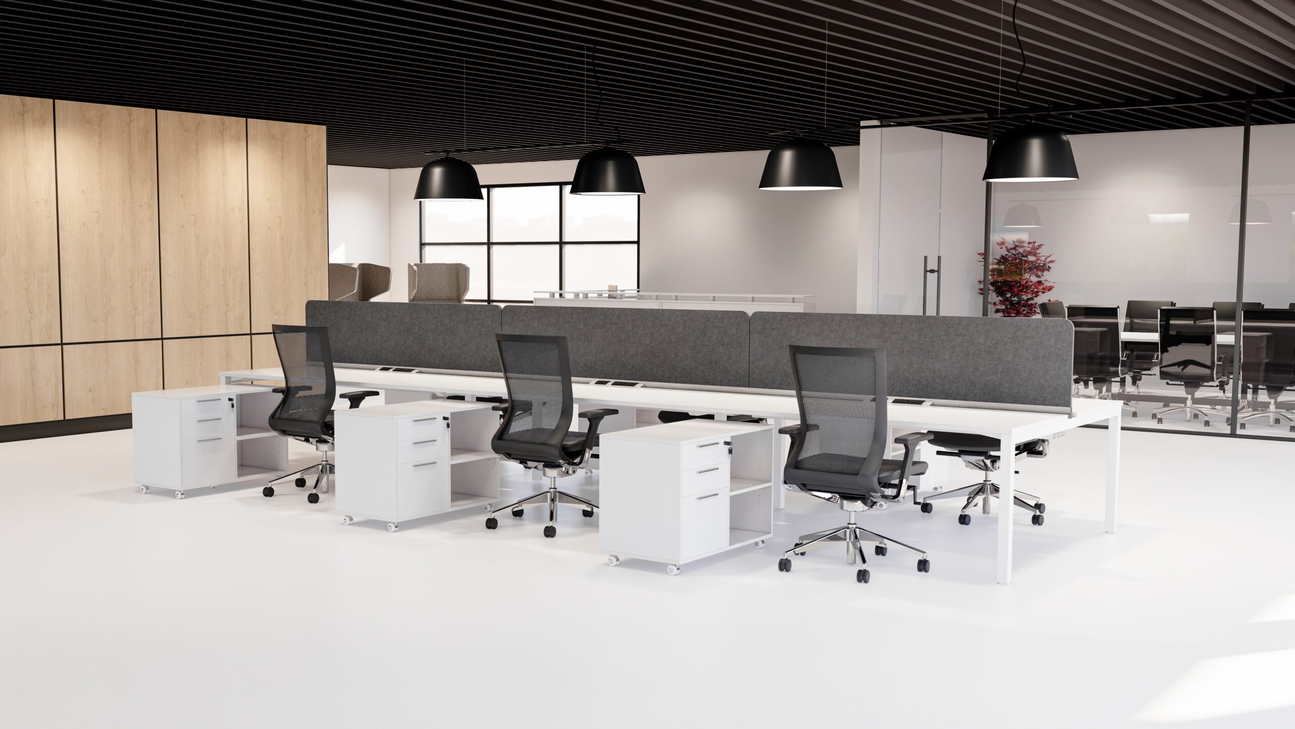 En travaillant avec des entreprises spécialisées dans la conception et la fabrication, nous proposons des bureaux à aire ouverte caractérisés par des lignes épurées et des matériaux de qualité supérieure.
