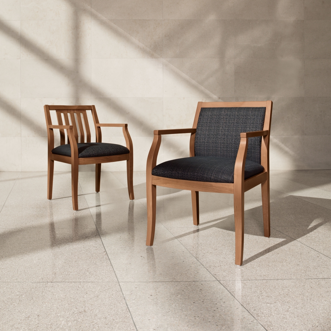 Nos chaises visiteurs en bois combinent robustesse et élégance, s’intégrant harmonieusement dans divers décors professionnels.