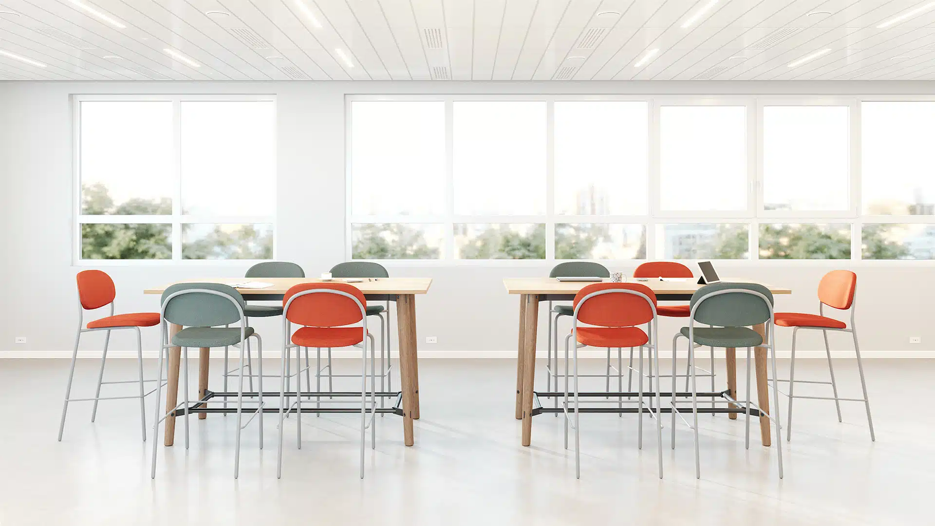 À la maison comme au travail, les tabourets sont de plus en plus populaires. Dans les espaces collaboratifs, ils deviennent très pratiques puisque les gens peuvent être confortablement assis sans toutefois être indisposés par ceux qui désirent rester debout. On peut facilement les agencer à des tables réglables en hauteur ou de style bistro.